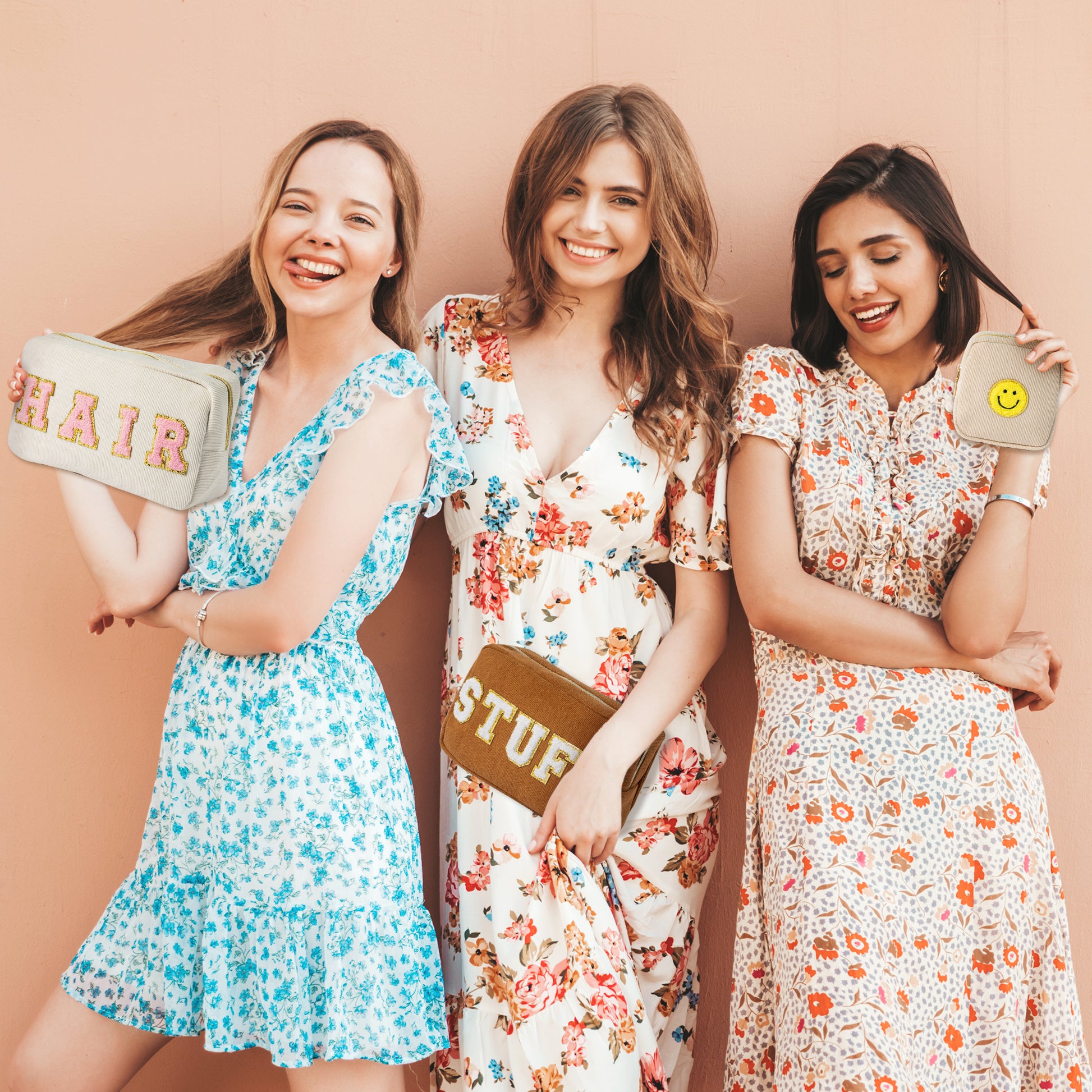 - Size Details: The size of FACE and STUFF toiletry bags are approx. 9.8 x 5.9 x 3.1inch, which with enough space to storage your commonly used makeups and accessories. About the smile patch cosmetic bag, it is 4.7 x 5.1 x 1.9inch. These perfectly sized makeup bags can meet your everyday needs.