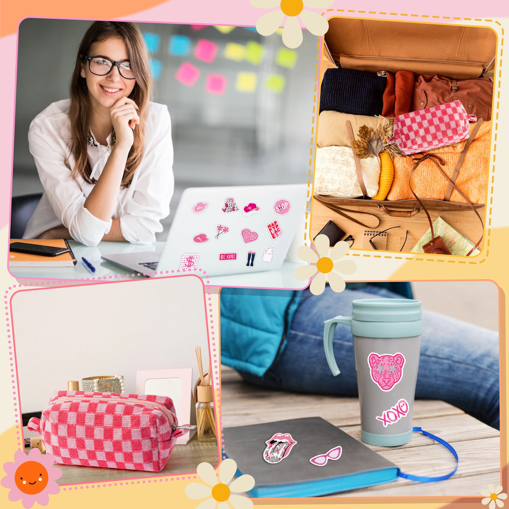 - Preppy Stickers: These preppy stickers bring color and whimsy to your personal items. Whether you're decorating your laptop, phone, notebook, water bottles, guitars, skateboards, traveling case or any other personal item, these stickers instantly add a pop of personality and style.