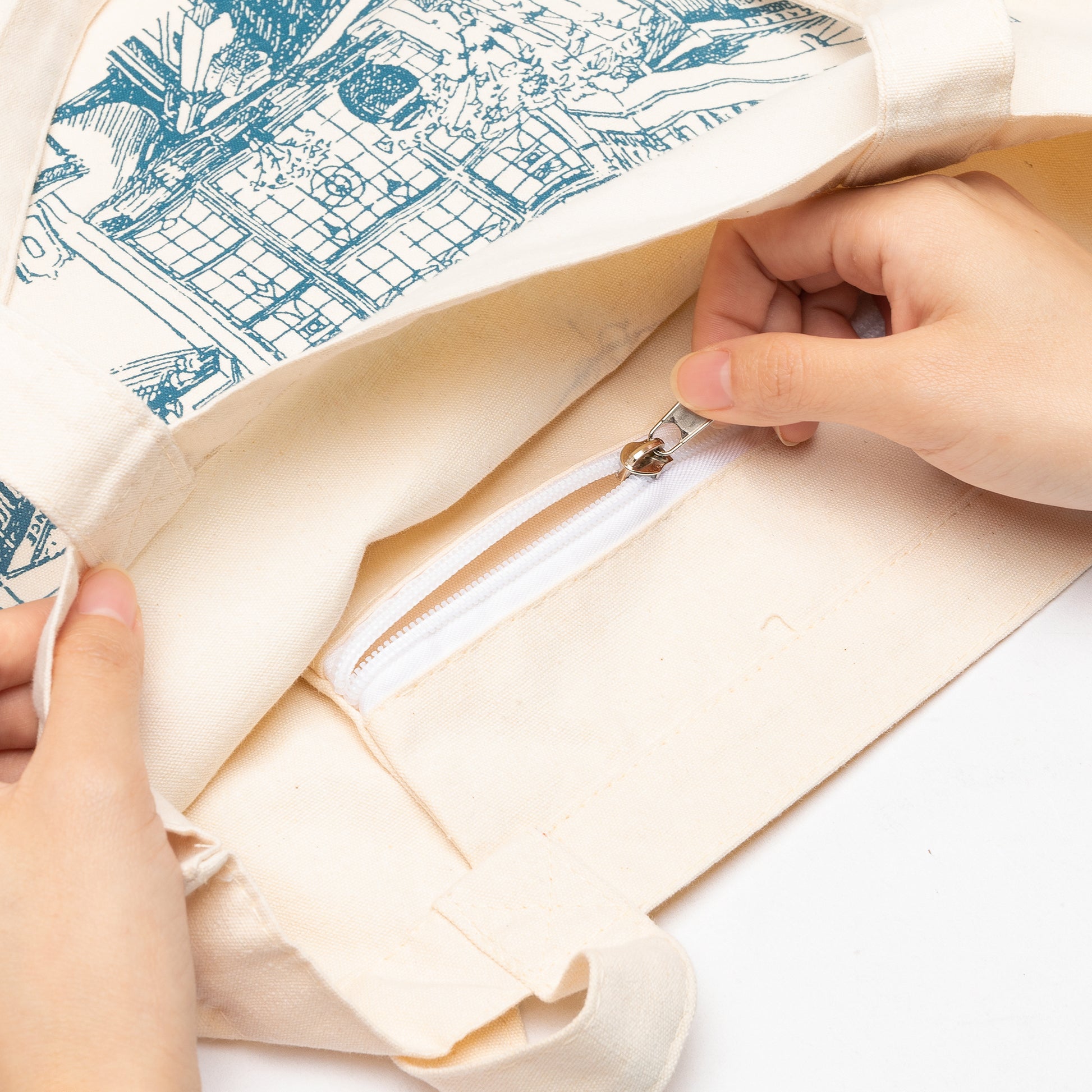 LieToi Bookstore Themed Canvas Tote Bag Stylish Library Shoulder Hand Bag Reusable High Capacity Shopping Grocery Bag Travel Casual Bag with Zipper Inner Pocket Daily Essentials for Women Girls Gift