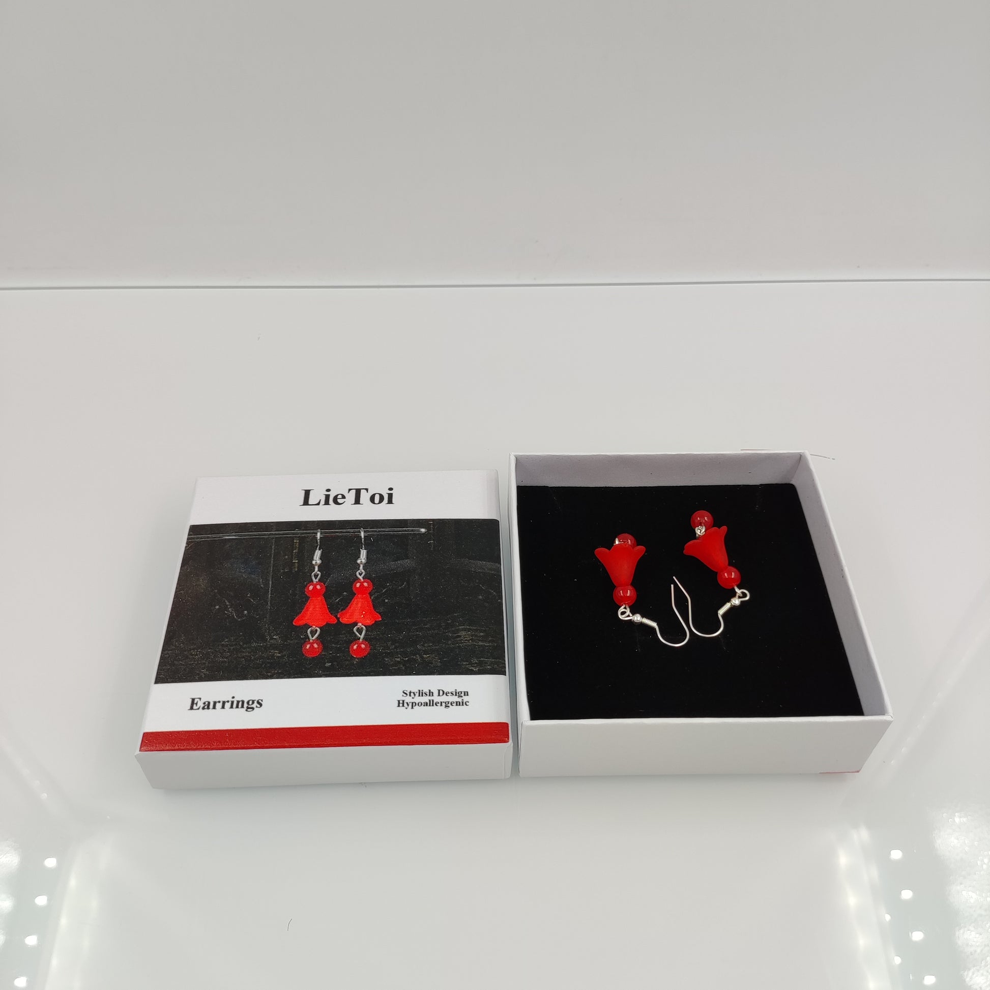 LieToi Red Earrings Flower Hypoallergenic Stylish Design for Women Girls Christmas Gift